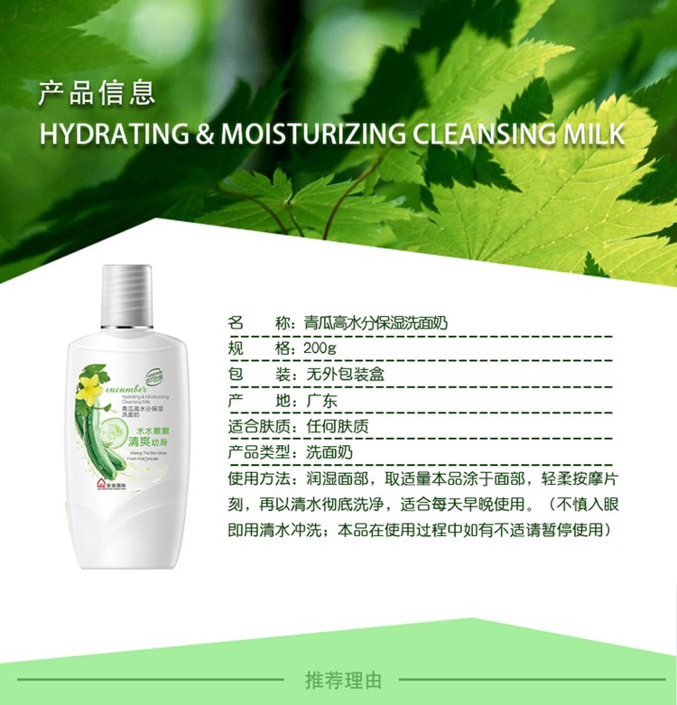 青瓜高水分保湿洗面奶200g